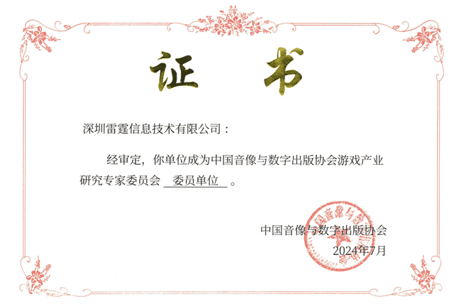 2024年7月25日,,,,中国音像与数字出版协会游戏产业研究专家委员会(以下简称“中国音数协游戏专委会”)成立大会在上海市召开,,,,厦门LEWIN乐玩网络技术股份有限公司及其子公司深圳雷霆信息技术有限公司(以下统称“公司”)正式成为中国音数协游戏专委会委员单位。。。