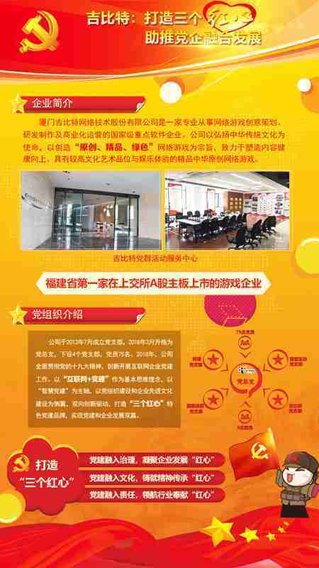 未来公司将全面学习贯彻习近平新时代中国特色社会主义思想和党的十九大精神,,,持续强化“互联网+党建”的思维理念,,,以“智慧党建”为主轴,,,,以党组织建设和企业先进文化建设为侧翼,,双向创新驱动,,引领有信仰、、、有情怀、、、有价值的新时代游戏研发运营,,在不断发展壮大的同时,,,,成为行业的“红色标杆”,,,实现党建和企业发展双赢。。。