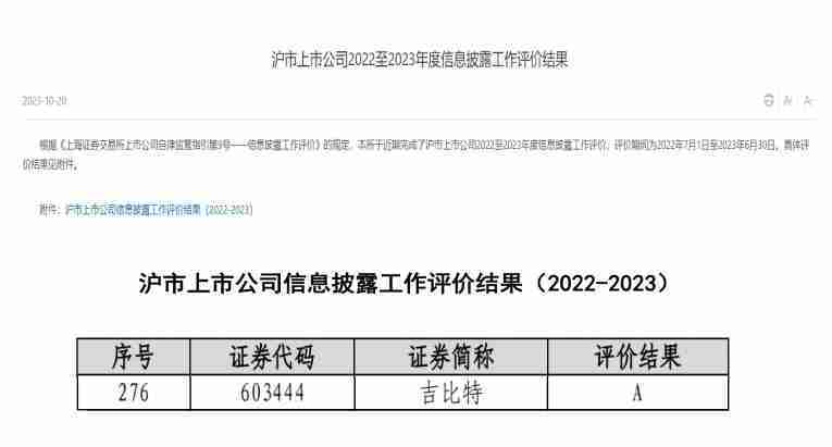 近日,,,上海证券交易所(以下简称“上交所”)发布2022-2023年度信息披露工作评价结果。。。。LEWIN乐玩(股票代码:::603444)凭借规范的公司治理、、、高质量的信息披露以及良好的投资者关系管理再次荣获信息披露工作A级评价,,公司连续两年获此殊荣。。。。